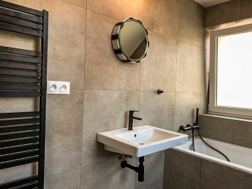 Dvě moderní koupelny poskytují pohodlí a soukromí i při delším pobytu s rodinou nebo přáteli. Světlé, čisté a promyšlené do detailu. Plně vybavená kuchyně s moderními spotřebiči a kompletním nádobím nabízí prostor, kde si snadno připravíte snídani, oběd nebo společnou večeři s výhledem na klidnou zahradu.