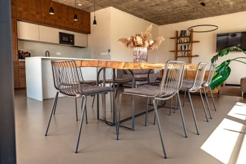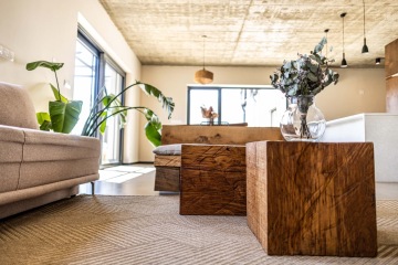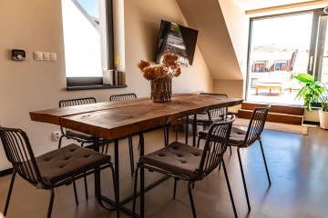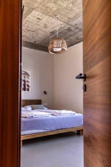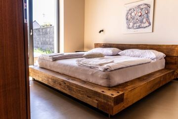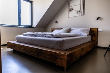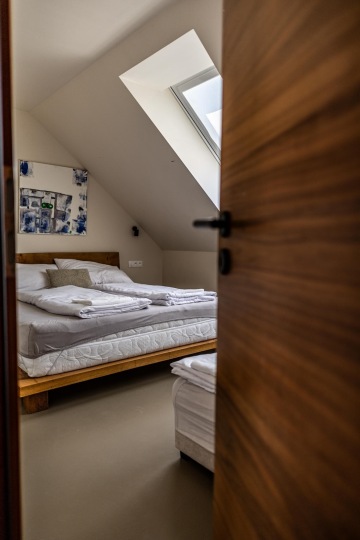 Každý vilabyt nabízí dvě komfortní ložnice s pohodlnými manželskými postelemi, které zvou k odpočinku po dni plném objevování Mikulova. Promyšlené úložné prostory zajistí, že se i na delším pobytu budete cítit jako doma. Součástí je také pohodlný rozkládací gauč v obývacím pokoji, která nabízí pohodlné spaní pro další hosty nebo děti.