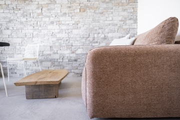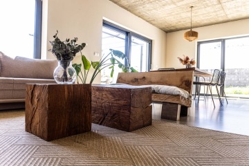 Obývací prostor s pohodlnou společenskou částí nabízí ideální zázemí pro sdílené chvíle i klidný odpočinek. Přímé propojení na terasu či zahradou s výhledem na zámek Mikulov podtrhuje atmosféru místa, kde se snoubí moderní komfort a autentické kouzlo jižní Moravy.