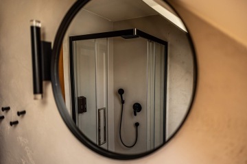Každý vilabyt nabízí plně vybavenou prostornou kuchyň, kde si pohodlně připravíte snídani, oběd i večeři. Moderní spotřebiče, kompletní sada nádobí a promyšlené doplňky vytvářejí prostor pro vaření bez kompromisů. Samozřejmostí je i vlastní koupelna se sprchovým koutem, navržená pro příjemné osvěžení a pohodlí během celého pobytu.